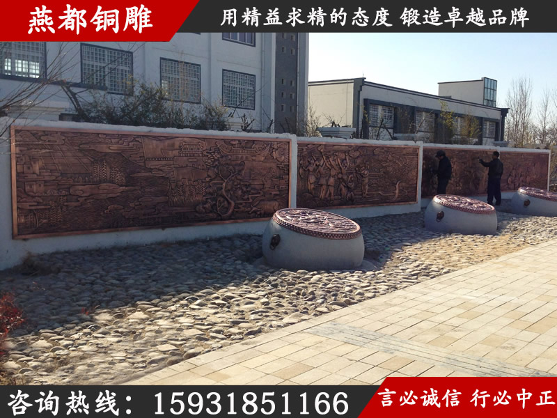 燕都銅雕工程案例——廣場(chǎng)墻面鍛銅文化墻銅浮雕