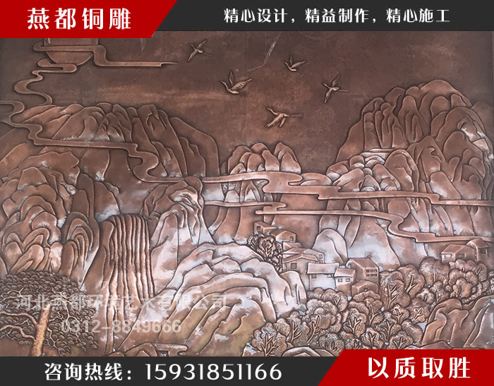 河北銅壁畫廠家、易縣銅雕廠家——燕都銅雕公司下設三個工程部,現(xiàn)有員工300多人,擁有60多人的技術核心團隊,其中國際注冊工藝美術大師3名、河北省民間工藝美術大師6名、河北省民間美術家10名、高級環(huán)境藝術師8名。過硬的技術團隊使銅雕鍛刻傳統(tǒng)技藝得到更好的傳承與發(fā)展,燕都銅雕的鍛刻作品以金、銀、銅等貴重金屬制作,融合了古典美學思想與現(xiàn)代藝術思維,具有豐富的文化內(nèi)涵和吉祥寓意,深受廣大客戶的青睞。