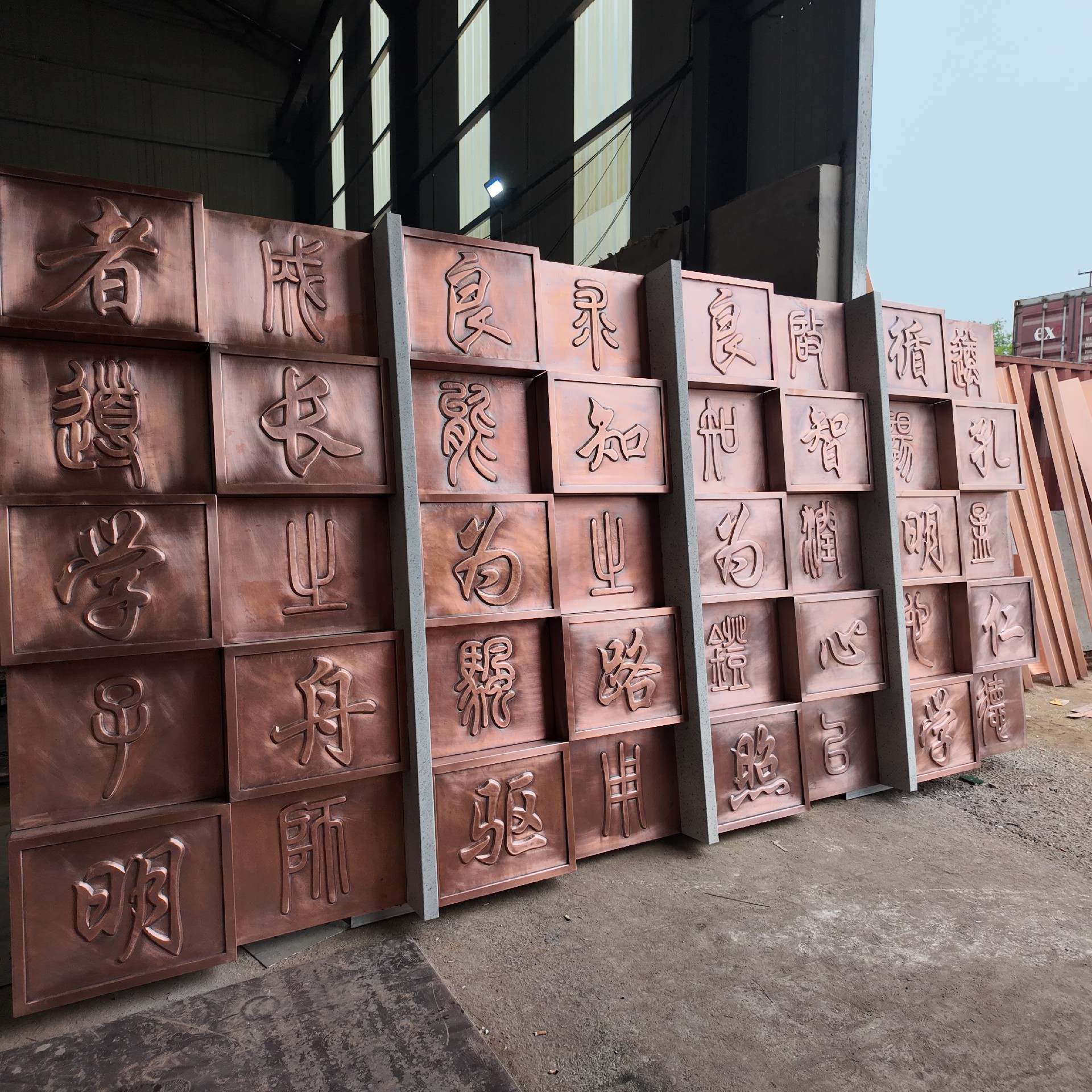 燕都銅雕工程案例——山東煙臺(tái)致良中學(xué)墻面鍛銅浮雕墻面