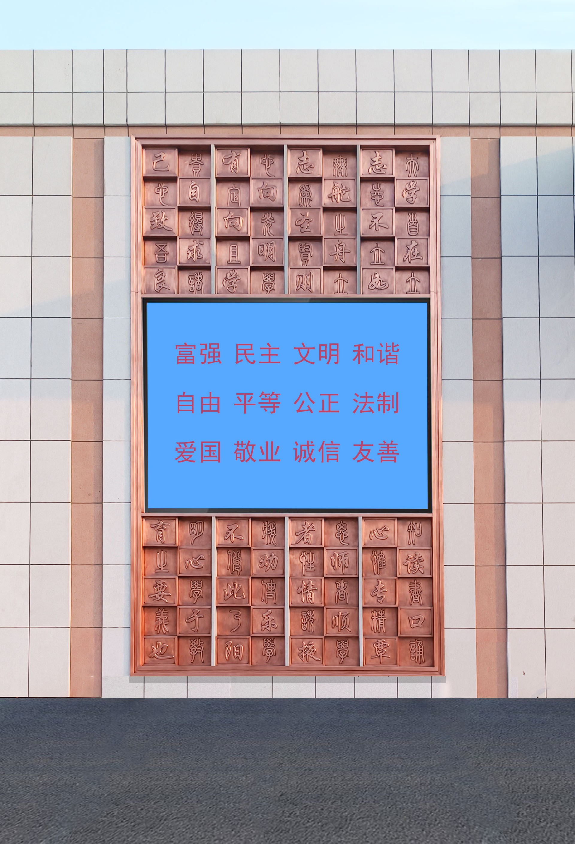 您當(dāng)前位置:燕都銅雕 >> 銅浮雕 >> 燕都銅雕工程案例——山東煙臺(tái)致良中學(xué)墻面鍛銅浮雕墻面